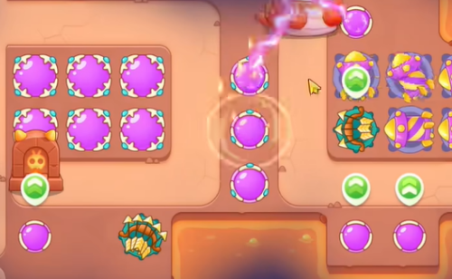 2、障碍物打掉空出位置建立魔法球,有金币就升级。