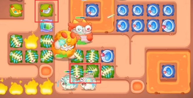 2、左下1鱼刺,左上1毒针,中下1鱼刺。