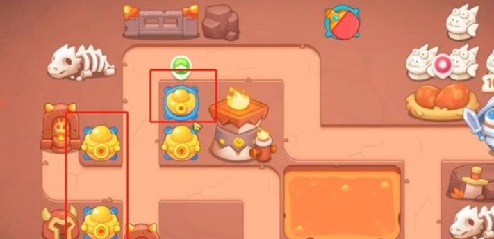1、第一波。上方1球拍,中间1聚宝盆并满级。
