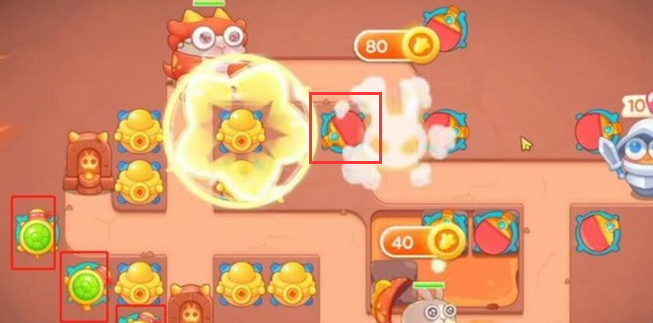 6、第六波。中间1球拍,左下2乌龟,道具全清后再1乌龟。