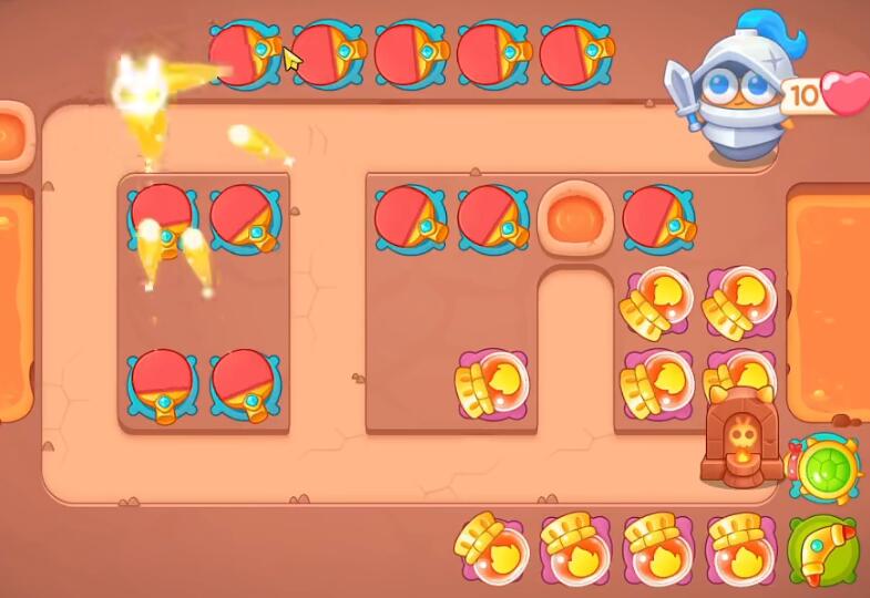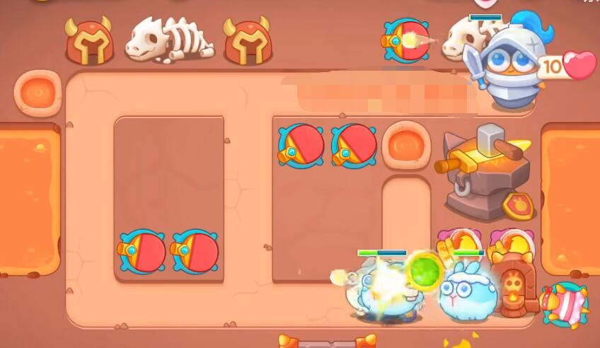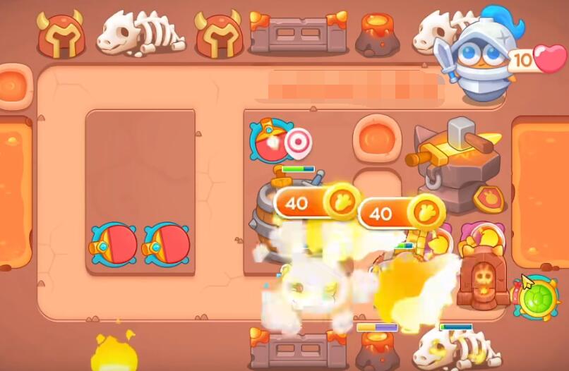 1、首先在开始的时候,在右下角放置满级的乌龟,在左边放置满级的球拍,锁定上面的铁毡。