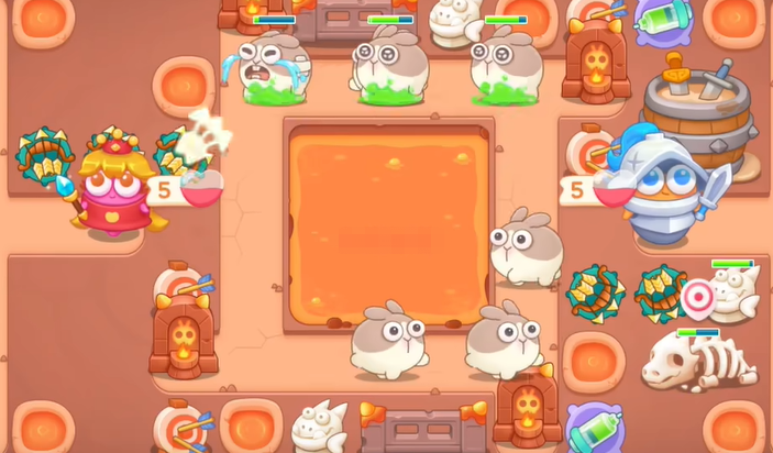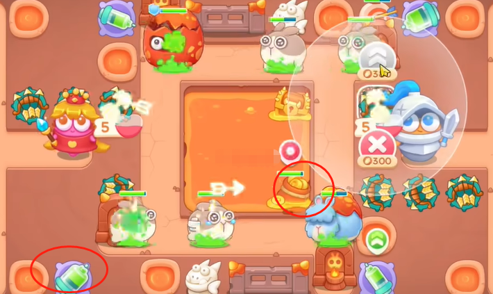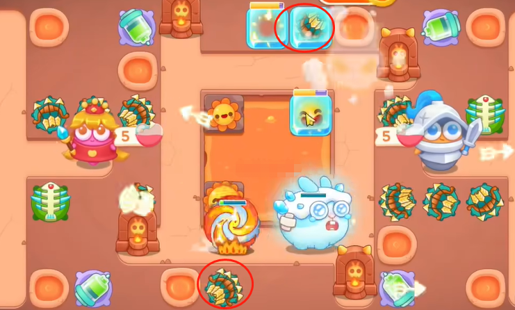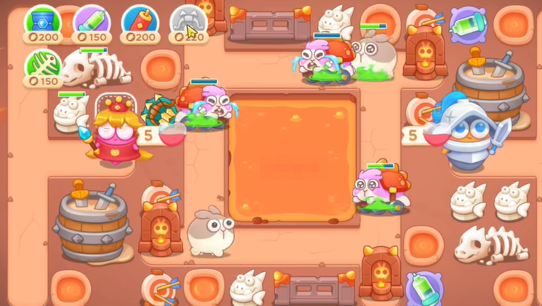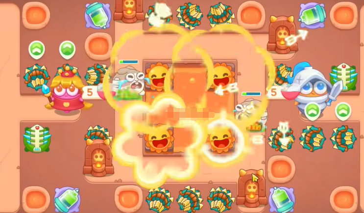 5、中间宝箱打掉之后是太阳,直接升级,左右建立鱼刺。