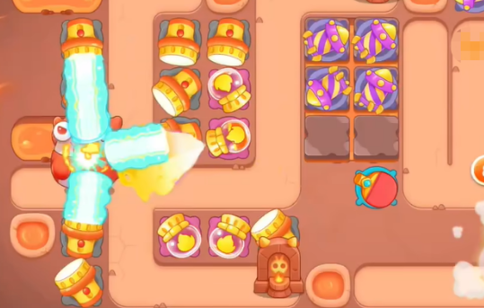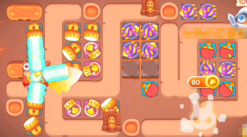 5、右边障碍物打掉,继续建立乒乓球,清理上面钱桶,清理掉空出位置,继续建立乒乓球,清理上面石块。