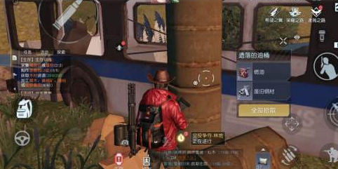 1、西部建设的时候,会有任务提示击杀这里的夜袅小队,靠河流的这一边会有个废弃公交,很醒目,靠近油桶就可以互动获取燃油一桶,右边有一堆轮胎,可以获得橡胶带,目前好像无法制造橡胶带。