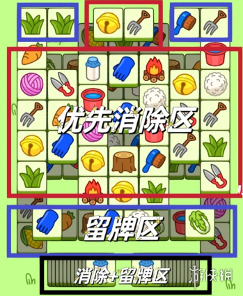 4.蓝色区域中前期尽量保留,后期再配合消除,努力每次都能和叠加区做消除,最后可以配合道具打乱顺序消除