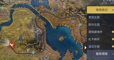 1、打开地图我们前往湖畔镇图中红框标出来的位置,在湖边的小岛。