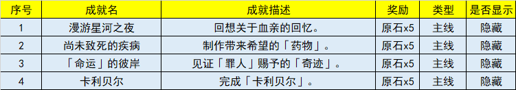 这部分的四个全部是3.5主线任务「卡利贝尔」的成就,只要做完任务就是必得的