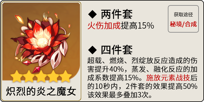 输出圣遗物可选4绝缘,4魔女,2+2散搭。