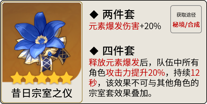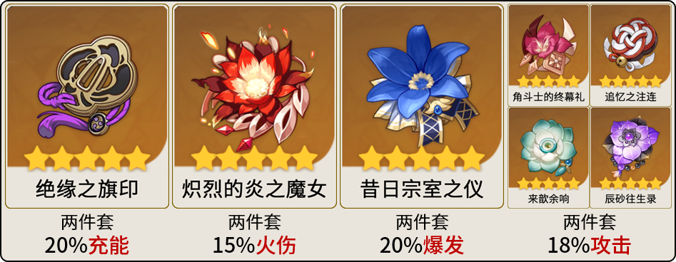 辅助圣遗物可选4千岩,4宗室,4教官。