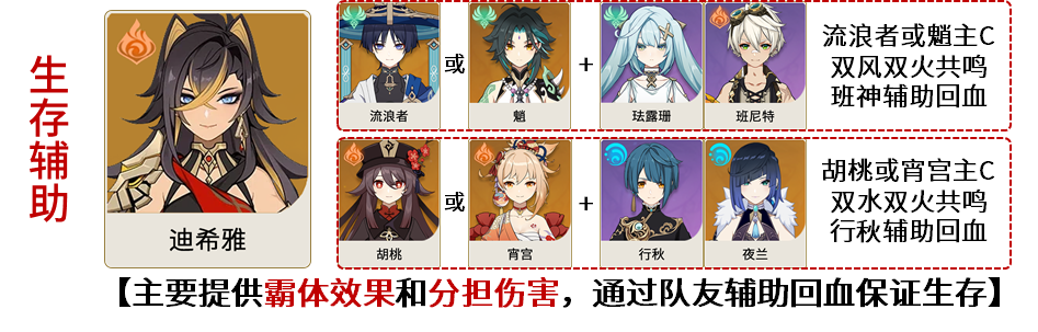 配队思路:围绕迪希雅的机制,基本上有两种配队思路: