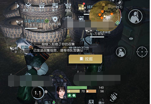 2、到达位置后,可以看到许多轮胎,在轮胎附近找一块石头,点击挖掘就可以获得宝藏。