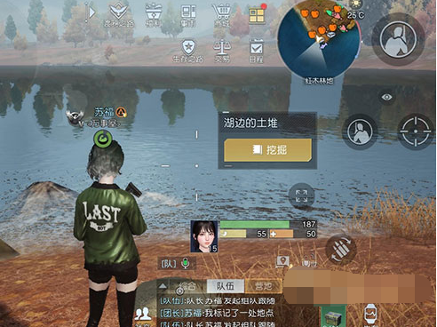 2、到达位置后可以在湖边的土堆处进行挖掘,既可获得宝藏。