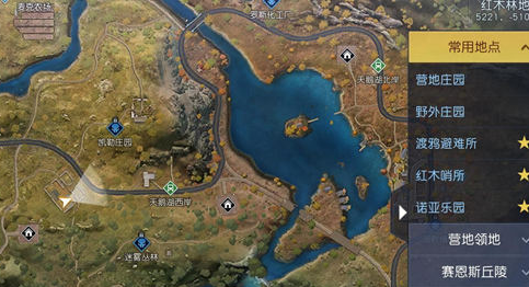 1、如图所示,来到红木林地凯勒庄园处,到达白色光标位置。