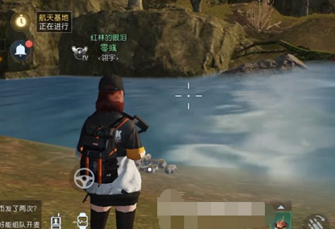 2、来到水边,面前有堆石头,点击挖掘既可获得宝藏。