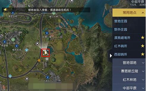 1、如图所示,来到希望镇左下角区域,红色标记处。