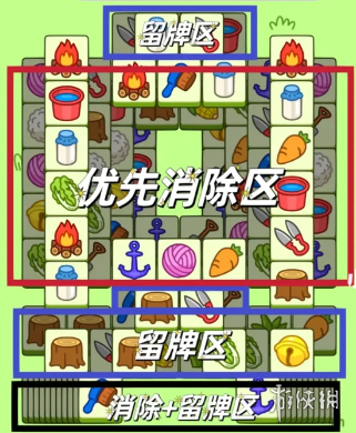 4.蓝色区域中前期尽量保留,后期再配合消除,努力每次都能和叠加区做消除,最后可以配合道具打乱顺序消除