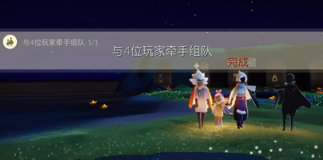 完成方法:和其他3位玩家一起牵手组队就好了