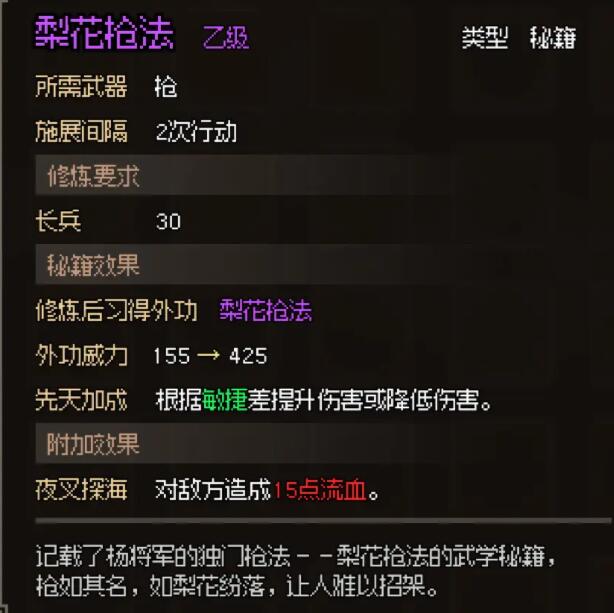 在如图所在位置消耗掉杨家排位,获得【梨花枪法】