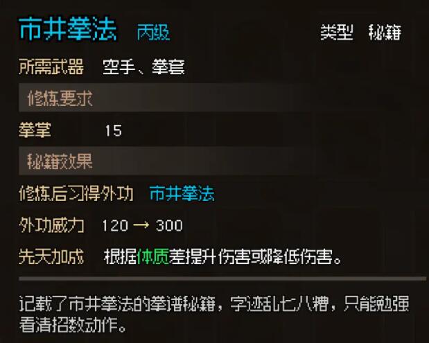 大概跟他打听15次左右(我是这么多次,也许看运气)会打听到破庙传闻(破庙拳法,拳掌要求30)等破庙等他三天剧情过后,npc离开了,晚上过来到他站的位置,触发剧情。