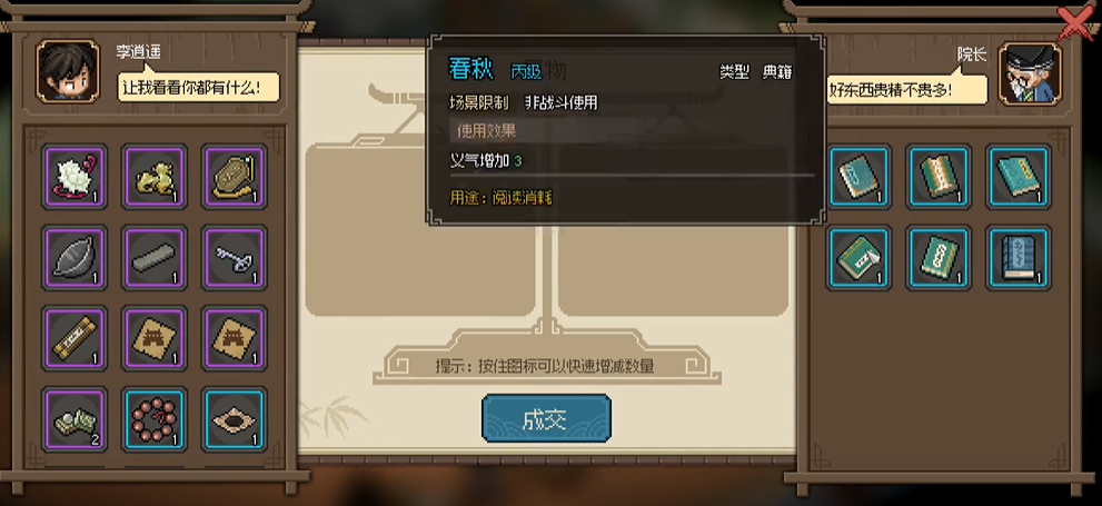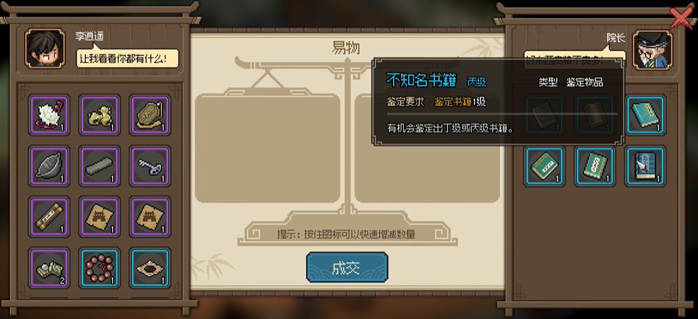 2、可以易物论语、周礼、易经、春秋、左传、不知名书籍这六种物品。