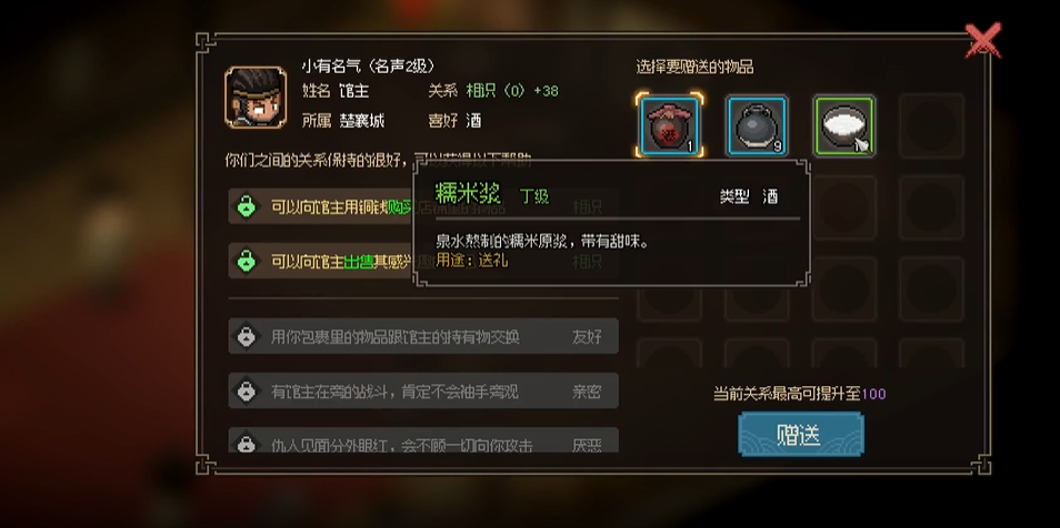 1、一直送糯米浆可以增加好感度至可易物状态。