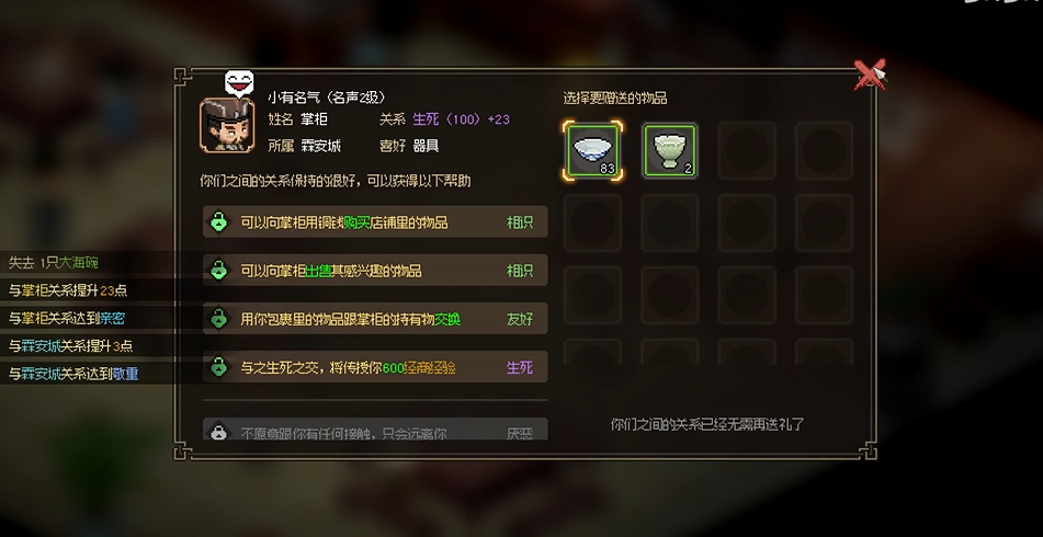 不能入队。加深好感,关系到生死可获得600经商经验。