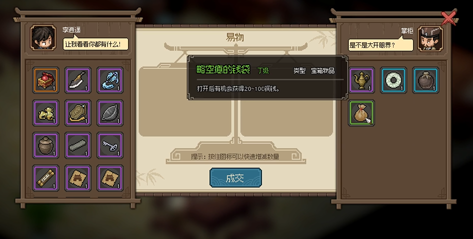 4、略空瘪的钱袋。打开后有机会获得20~100铜钱。