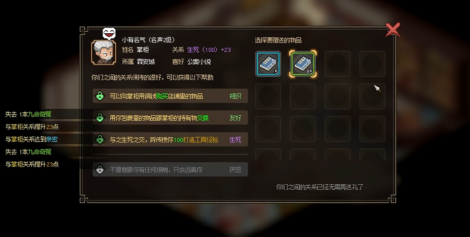 大侠立志传杂物肆掌柜的喜好是什么