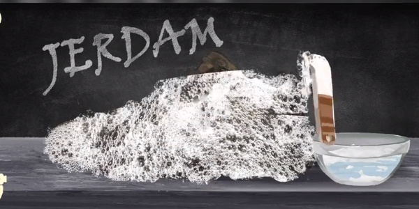 2、我们在玻璃里倒洗衣液和洗衣粉,用刷子放玻璃容器拿出刷鞋子。