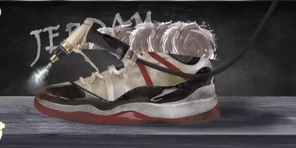 3、我们用圆头工具擦鞋子,用水枪洗干净。