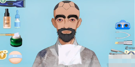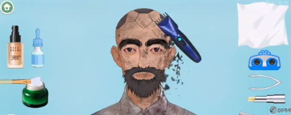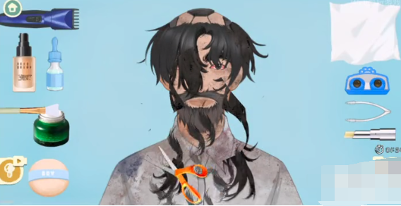 1、首先剪刀修剪胡子和头发,用剃刀把头发剃短。