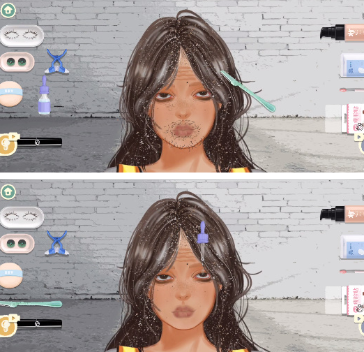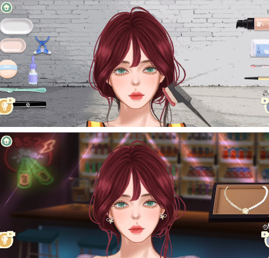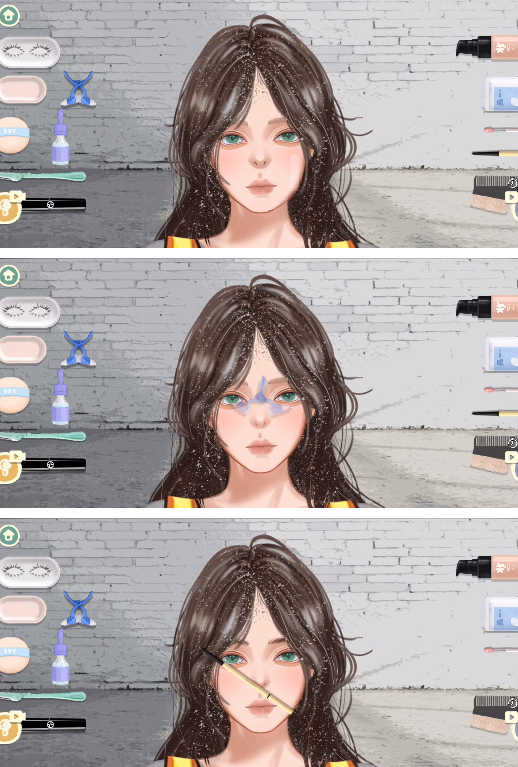 6、最后梳头发,涂颜色,穿好衣服,带上首饰即可过关。