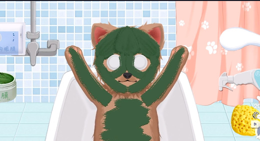 3、给狗贴眼膜,全身涂泥膜,取下眼膜,用刷子把泥膜刷掉。