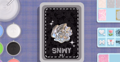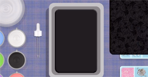 3、吸取透明滴胶打底暗夜风格所以吸取黑色滴胶,再来选择对应的装饰物品,另一种要求是制作粉色系,对应选择即可;