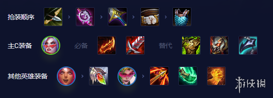 副C可考虑薇恩或崔斯特,物理输出装给予薇恩,法强装备给予崔斯特就好。