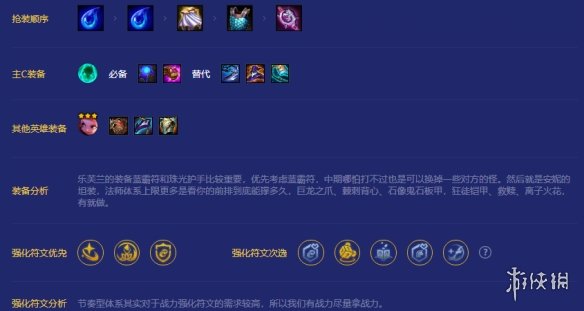 乐芙兰的装备蓝霸符和珠光护手比较重要,优先考虑蓝霸符,中期哪怕打不过也是可以换掉一些对方的怪。然后就是安妮的坦装,法师体系上限更多是看你的前排到底能撑多久,巨龙之爪、棘刺背心、石像鬼石板甲,狂徒铠甲、救赎、离子火花,有就做。