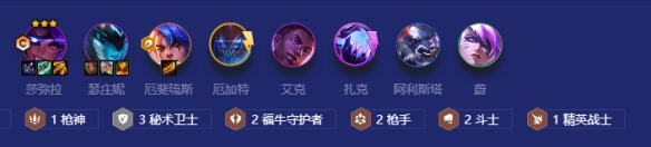 8级,大搜,找两星【莎弥拉】、两星【瑟庄妮】,有1星【厄斐琉斯】最好,没有就上【赛娜】或者【希维尔】。没有【厄加特】可用【索尔】。【扎克】可换成【费德提克】。