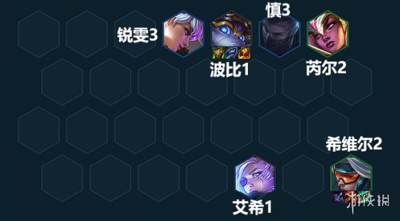 阵容组成:锐雯、芮尔、波比、慎、艾希、希维尔