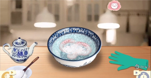 1、首先把左下角的糖倒入,在使用手套揉搓,再倒上醋再使用手套揉搓即可;