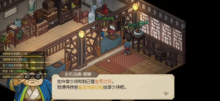 我们在大侠立志传的游戏过程当中,可以遇到很多的游戏角色,大家也是可以与角色互动送礼,并且邀请入队的,小编今天为大家带来的是永乐当铺朝奉的详细攻略,感兴趣的玩家可以来了解一下。