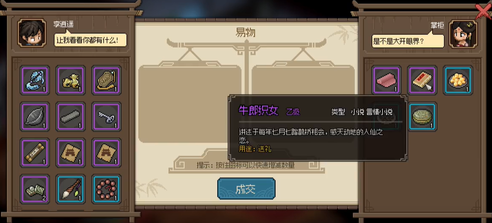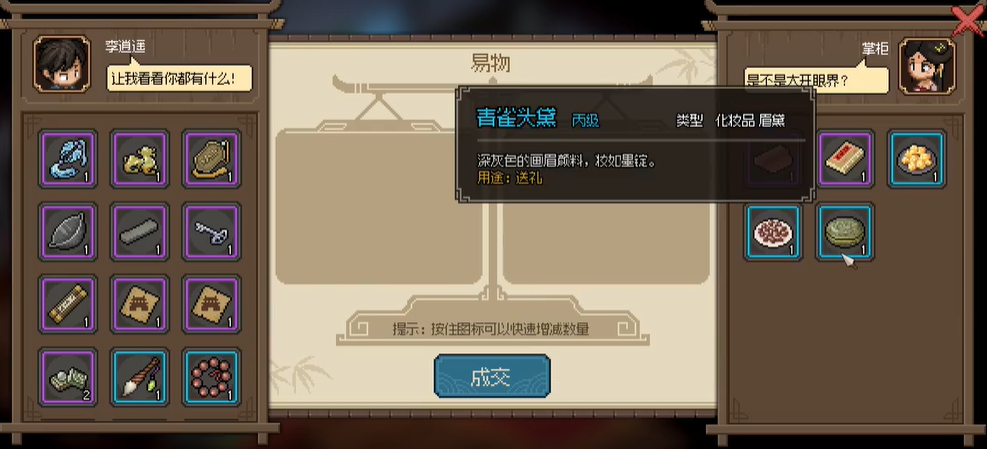2、可易物的物品有绸、牛郎织女、蜜饯姜片、蜜饯李子、青雀头黛。