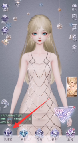 2、进入设计室以后我们需要拉动屏幕,找到底部的【重塑容颜】。