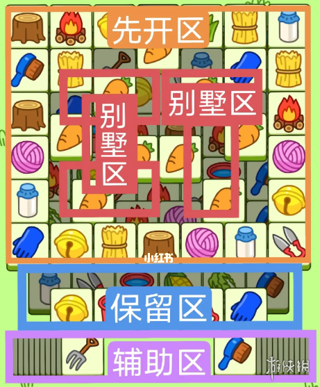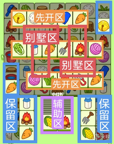 3.必要时可以用紫色盲盒区辅助消除,盲盒区后期不用留太多,留几张备用即可。