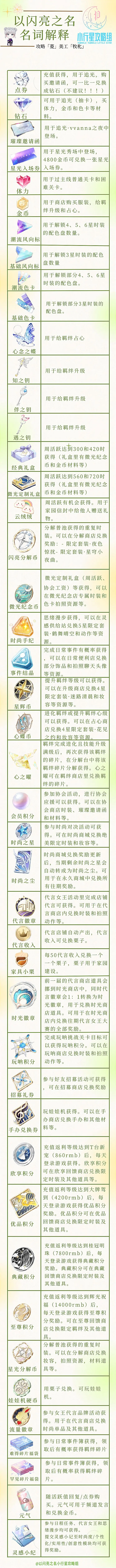 玩家会在以闪亮之名里获得非常多的道具,很多玩家在看到这些道具的时候,并不知道有什么用处,这也让玩家游戏的体验不是很高,这里小编为大家整理了完整的道具的用途,欢迎大家来参考哦。