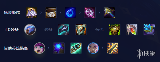 装备上优先合成龙牙与石像鬼,后排装备优先蓝霸符与科技刀。
