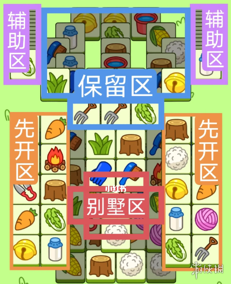 1、一个十字型大别墅,开局先消除橙色区,这里压牌此较多。