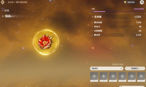 2、圣遗物强化等级的上限与星级相关,大家常用的四星圣遗物最高强化到16级,也就是有4个副属性词条。每次强化词条属性时,会在已有的副属性中随机选择词条强化;