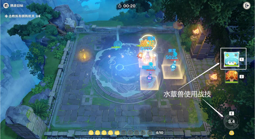 后续出现三个棋子,选择水蕈兽使用战技挂水。