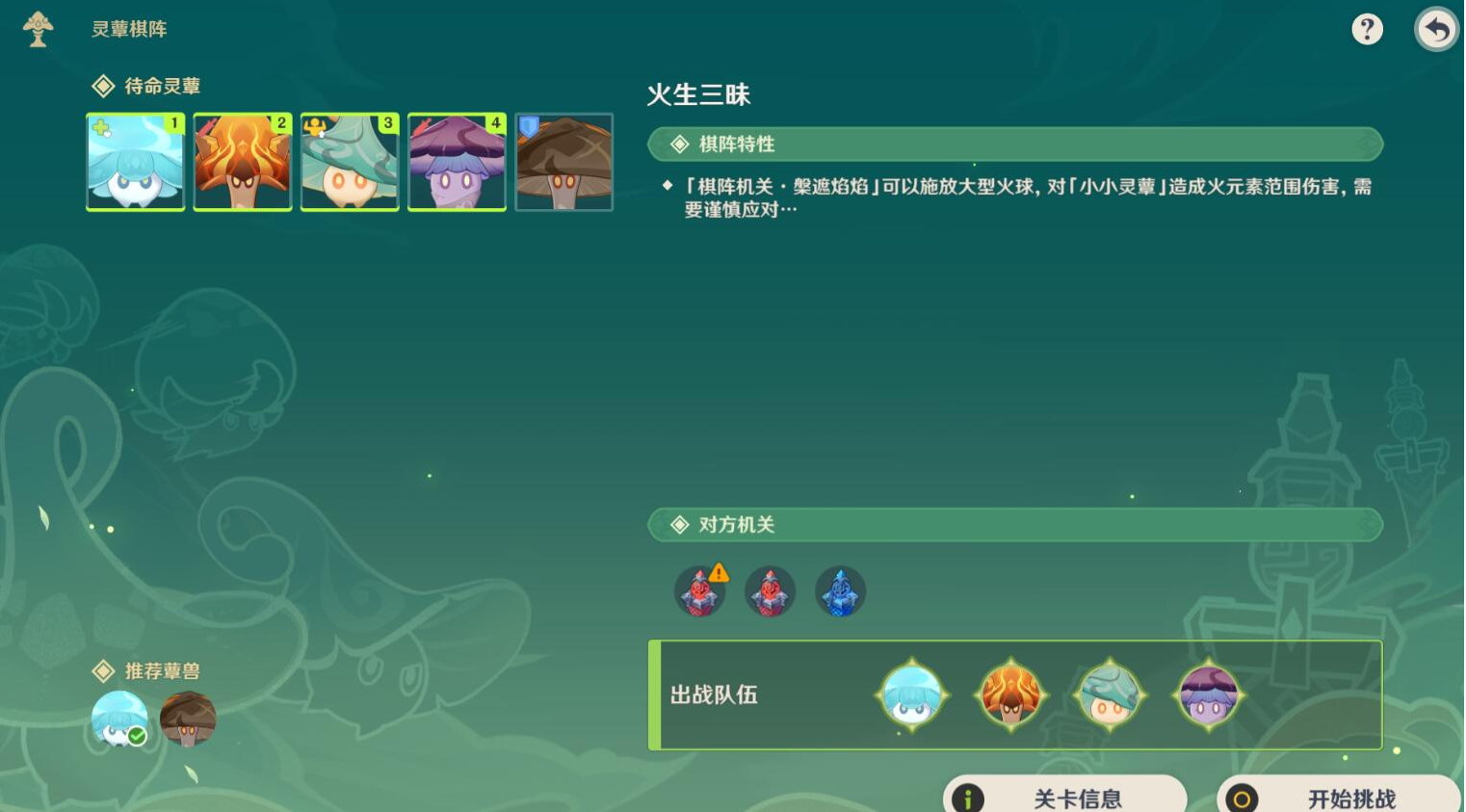 灵蕈棋阵其实是原神新出的一个活动,这个活动分为了好几天不同的关卡,那么你知不知道本次原神灵蕈棋阵活动第一天的关卡该怎么过呢?如果你想知道灵蕈棋阵第一关的通关方法的话就赶紧来看看本文吧。
