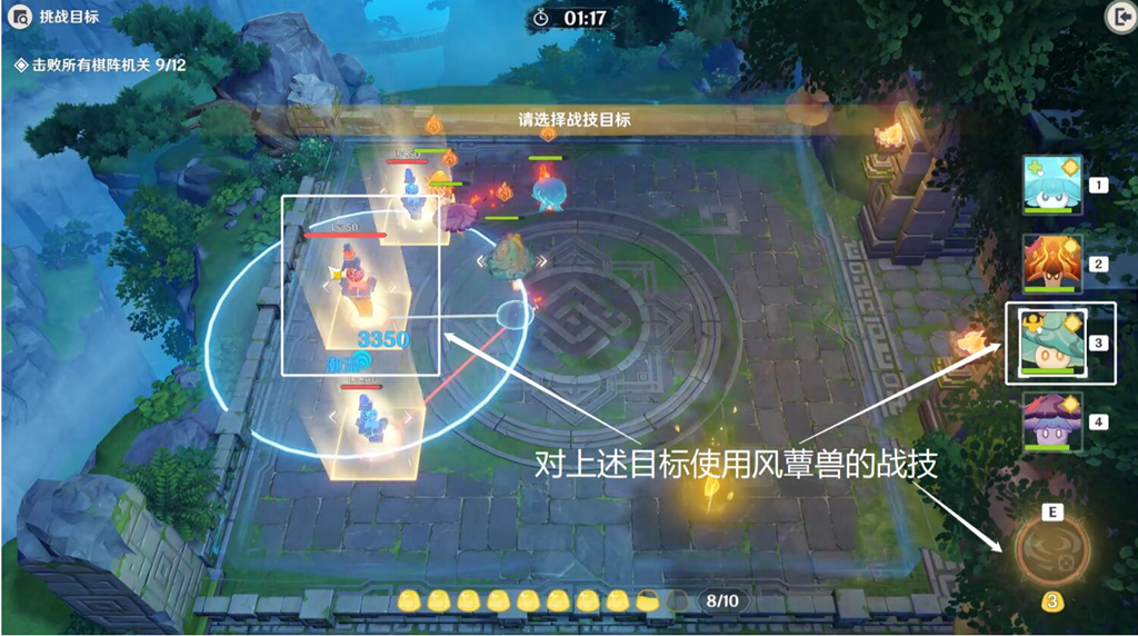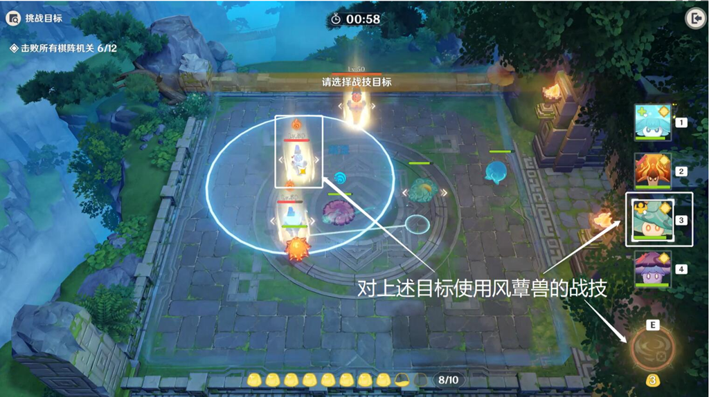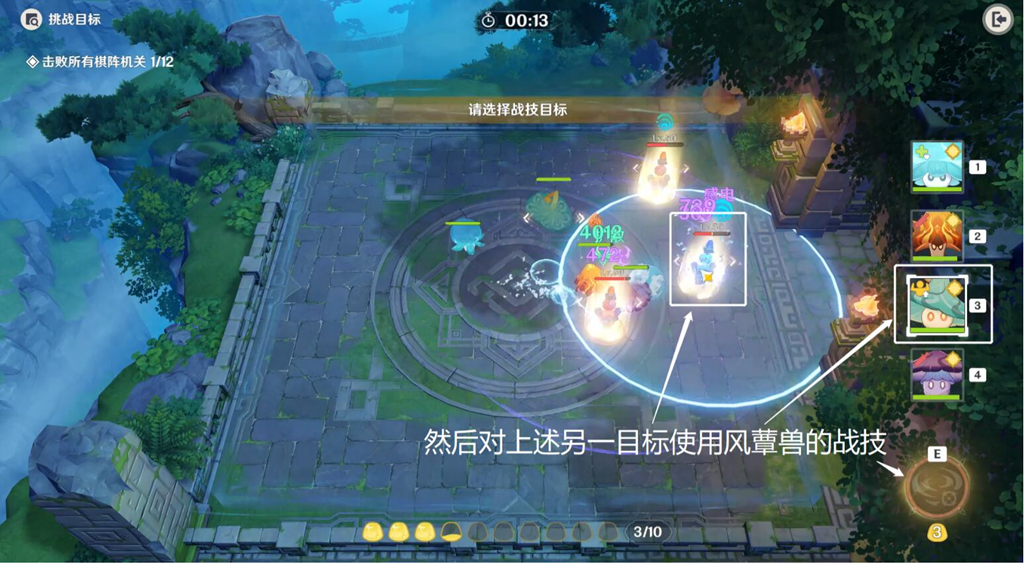10~12号敌人时,对上图目标使用风蕈兽的战技。